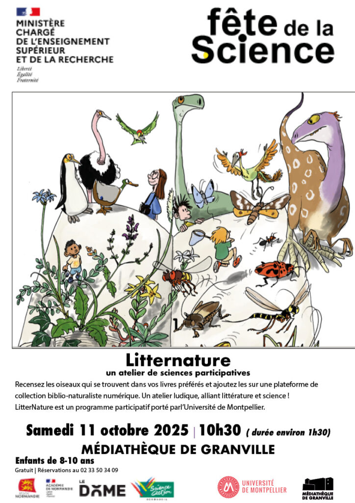Dans le cadre de la Fête de la science, l’espace enfants de la médiathèque propose un atelier ludique alliant littérature et science ! Ce rendez-vous s’articule autour du recensement des oiseaux dans les livres préférés des 8-10 ans. Ils devront être ajoutés sur la plateforme biblio-naturaliste numérique.